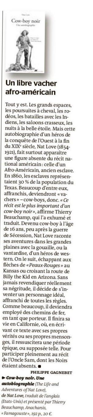 Nat Love n’évoque pourtant jamais la « question de la race » en faisant le récit de sa vie mouvementée. Mais par cette insouciance même, il révèle l’ordinaire de la présence des cow-boys noirs sur les pistes, et témoigne simultanément de leur effacement de l’histoire.