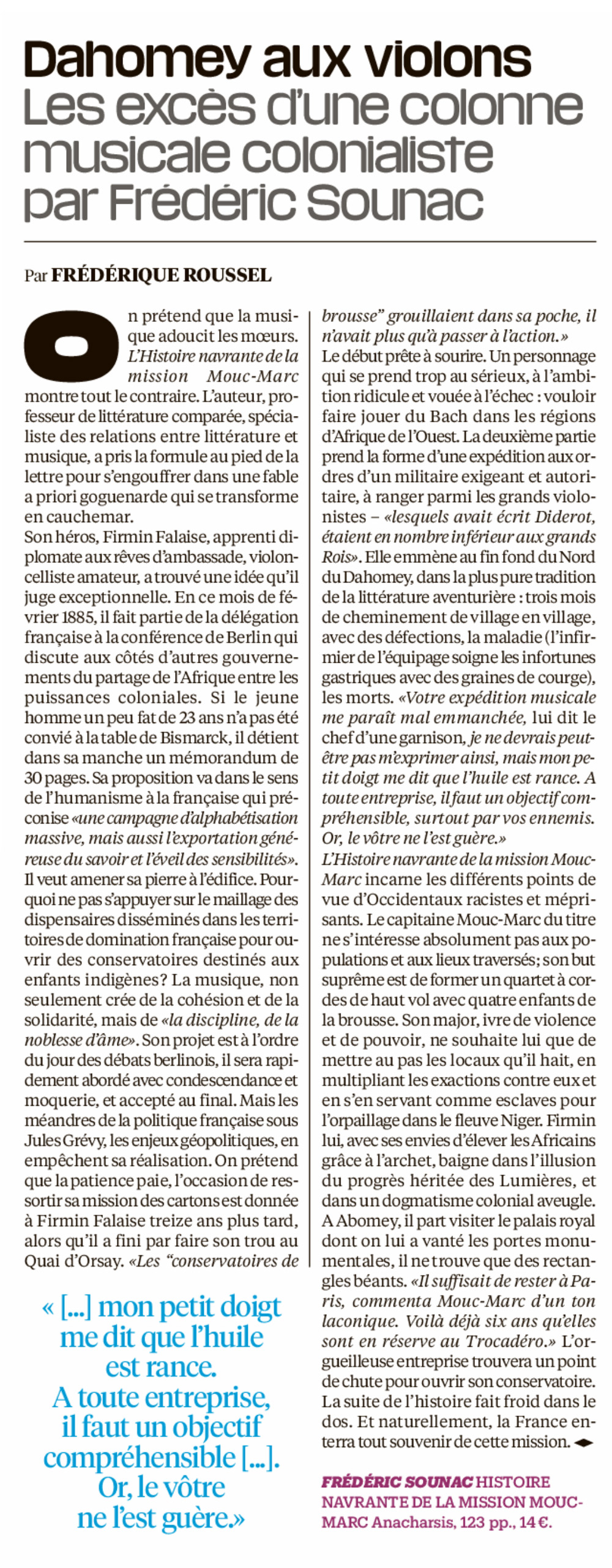 La musique adoucit les mœurs. Firmin Falaise, diplomate mélomane, en est en tous les cas très convaincu. Aux abords de l’année 1900, le ministère l’autorise à organiser une expédition à destination du fin fond du Dahomey, sur une boucle du Niger, afin d’aller civiliser les jeunes garçons en leur apprenant à jouer Haydn, Bach ou Beethoven.